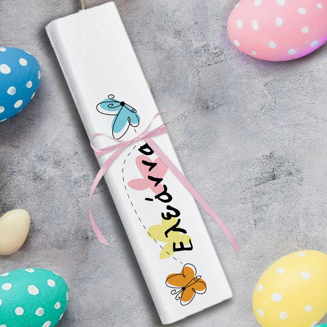 Πασχαλινή Λαμπάδα με Όνομα & διακόσμηση κορδέλα