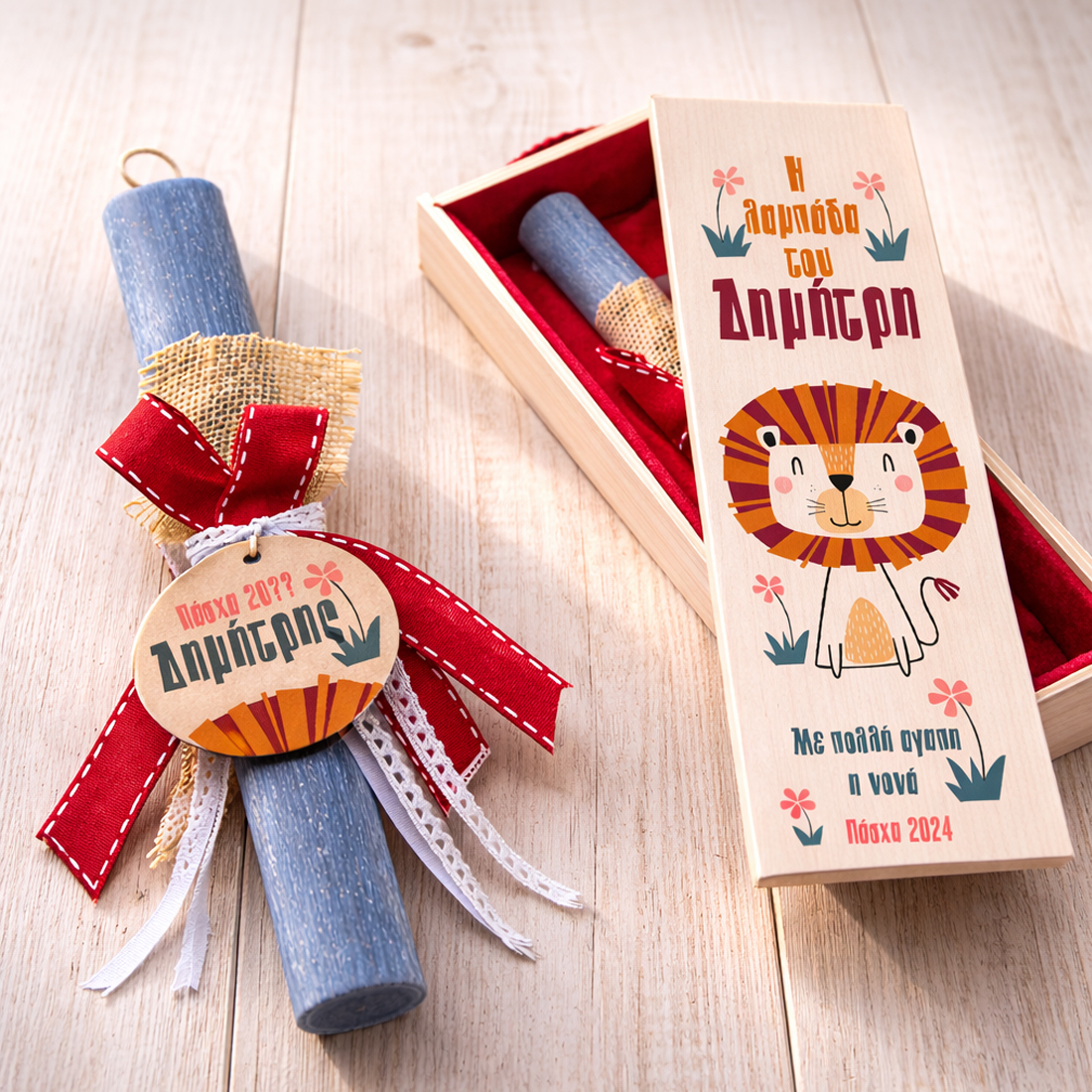 Χειροποίητη Λαμπάδα για αγόρι σε Ξύλινο Κουτί με Όνομα