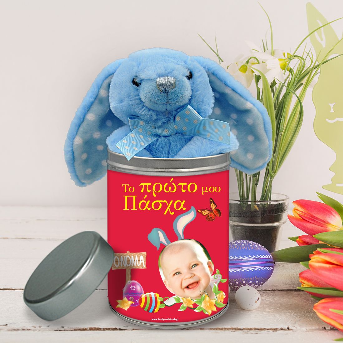 Προσωποποιημένο Πασχαλινό Λαγουδάκι σε Μεταλλικό Κουτί με Φωτογραφία, ένα Πρωτότυπο Πασχαλινό Δώρο για Παιδιά, Αγόρι ή κορίτσι που μπορεί να κάνει η Νονά ή ο Νονός μαζί με την Λαμπάδα στο Βαφτιστήρι. Στο Προσωποποιημένο Πασχαλινό Λαγουδάκι με Φωτογραφία, σε Μεταλλικό Κουτί, μπορεί η Η Νονά να γράψει και τις ευχές της στο Βαφτιστήρι της, κάνοντας το πασχαλινό δώρο Μοναδικό που θα κρατηθεί για πάντα. Το Προσωποποιημένο Πασχαλινό Λαγουδάκι σε Μεταλλικό Κουτί με Φωτογραφία, μπορεί να δοθεί σαν πασχαλινό παιδικό δώρο, είτε από τον Παππού και την Γιαγιά στο εγγονάκι τους, είτε από την θεία κα τον θείο στο ανιψάκι τους. Επίσης το Προσωποποιημένο Πασχαλινό Λαγουδάκι με Φωτογραφία, σε Μεταλλικό Κουτί, μπορεί να δοθεί για πασχαλινό Δώρο σε φίλο ή φίλη και να ξεχωρίσει από όλα τα άλλα δώρα γιατί είναι προσωπικό και ξεχωριστό και θα δημιουργεί αναμνήσεις για πάντα. Το Προσωποποιημένο Πασχαλινό Λαγουδάκι με Φωτογραφία, σε Μεταλλικό Κουτί, Μπορείτε επίσης να το συνδυάσετε με ένα με μια Πασχαλινή Λαμπάδα για παιδιά, άνδρες ή γυναίκες. ΠΕΡΙΓΡΑΦΗ