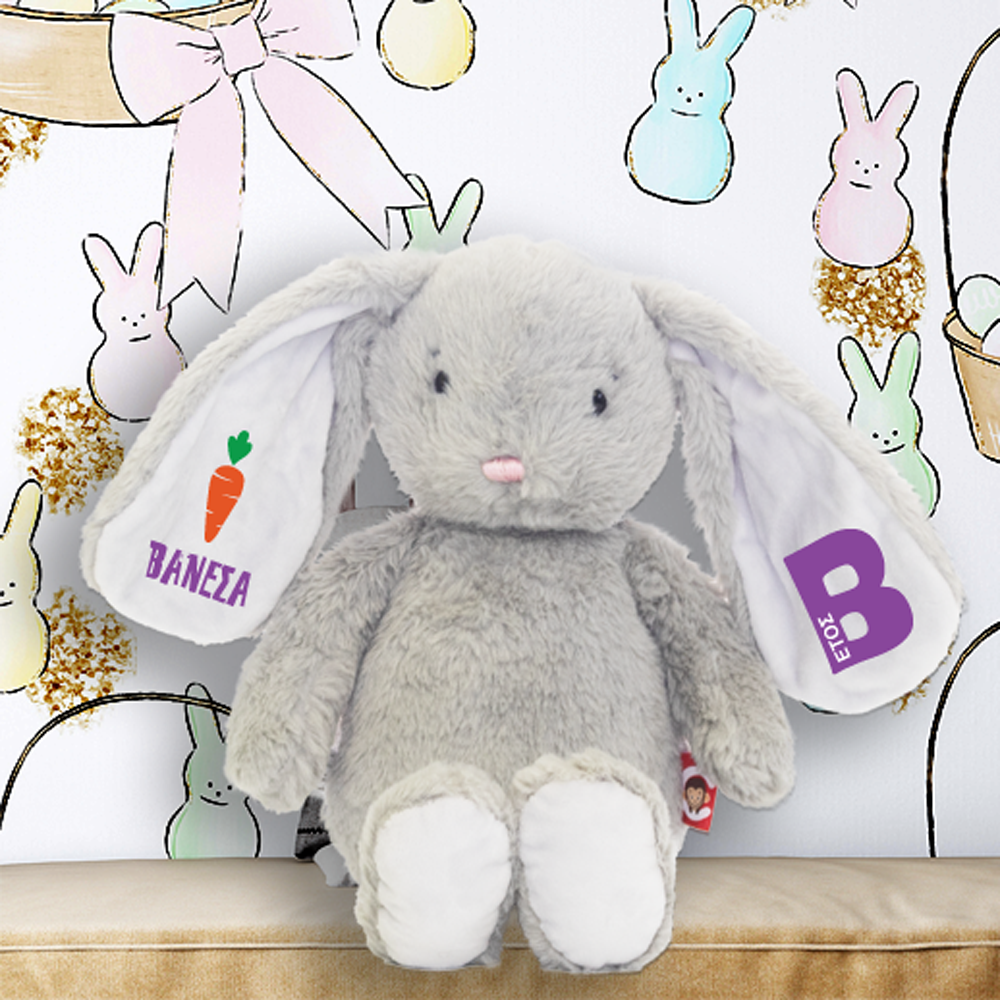 Το Προσωποποιημένο Λούτρινο Λαγουδάκι με Καρότο και Αρχικό, είναι ένα Πρωτότυπο Πασχαλινό Δώρο για Παιδιά, Αγόρι ή κορίτσι που μπορεί να κάνει η Νονά ή ο Νονός μαζί με την Λαμπάδα στο Βαφτιστήρι.