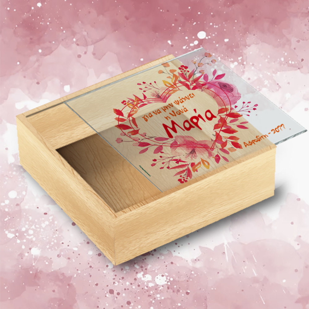 Κάντε και εσείς ένα μοναδικό προσωποποιημένο Δώρο Ξύλινο Κουτί αποθήκευσης με καπάκι plexiglass με μήνυμα, στην αγαπημένης σας φίλη που γιορτάζει την ονομαστική της γιορτή. Ένα προσωποποιημένο δώρο που μένει για πάντα αναμνηστικό και δημιουργεί μοναδικές αναμνήσεις κάθε φορά που θα το βλέπουν.