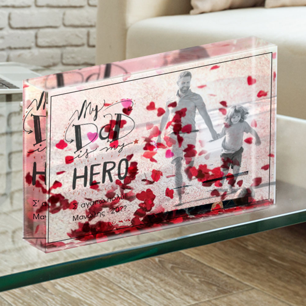 Με αιωρούμενες καρδούλες Κορνίζα my Dad my Hero, με Ονόματα, Μήνυμα, Προσωποποιημένη, είναι ένα ξεχωριστό δώρο για την Γιορτή του Πατέρα, 1st father's day, που είναι κάθε Ιούνιο την 3η Κυριακή! Γράψετε και την ημερομηνία που θα δώσετε το δώρο για να θυμάστε για πάντα την στιγμή που ζήσατε με τον Μπαμπά.