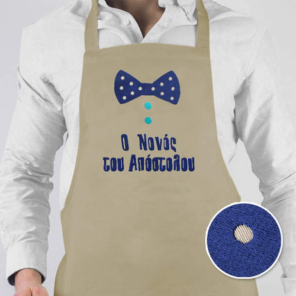 Η Ποδιά με το Προσωποποιημένο κέντημα, embroidered για Νονό, με Όνομα, Ημ/νία θα προστατεύσει τον νονό ή την νονά από το λάδι και ταυτόχρονα θα δημιουργεί μοναδικές αναμνήσεις στον νονό για πολλά χρόνια.