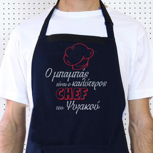 Ένα ξεχωριστό δώρο για τη Γιορτή του Πατέρα που θα ξεχωρίσει από όλα τα άλλα και θα μείνει στο σπίτι σίγουρα για πολλά χρόνια είναι η Προσωποποιημένη Ποδιά Κουζίνας Ο Μπαμπάς είναι ο καλύτερος Σεφ της Περιοχής!