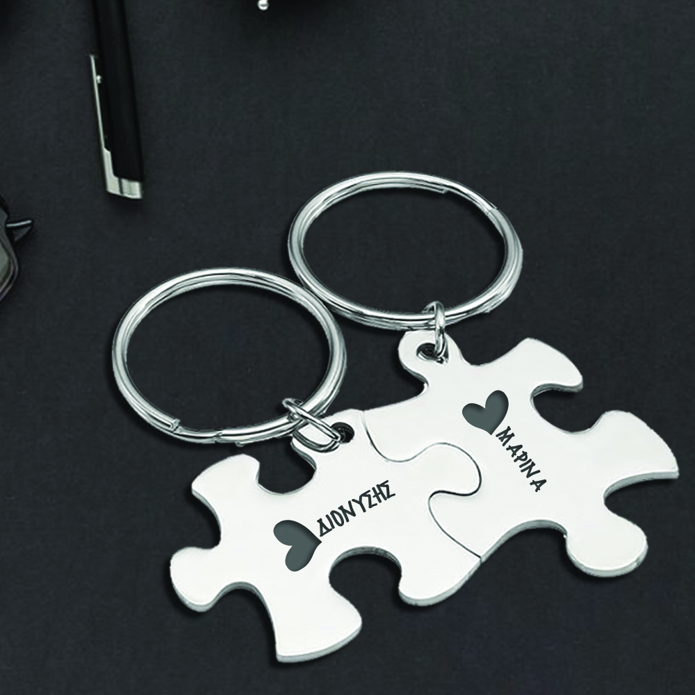 Για τα κλειδιά του σπιτιου σας Σετ StaInless Steel, 2 Μεταλλικά Μπρελόκ Παζλ με Χάραξη Όνομα για Ζευγάρια, Προσωποποιημένα δώρο με laser χάραξη, δωρο για την επετεΙο σας στο αγόρι σας, που θα εντυπωσιάσει και θα δείξει ότι τον θυμηθήκατε και πόσο πολύ τον αγαπάτε!