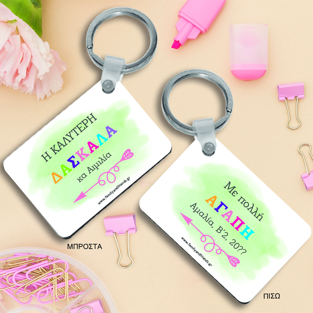 Στο familyandfriends.gr θα βρείτε μοναδικά προσωποποιημένα δώρα γενεθλίων και δώρα γιορτών προσωποποιημένα για ανδρες και γυναίκες. Η Δασκάλα, η Καθηγήτρια ή συνοδός σχολικού είναι ένα ξεχωριστό πρόσωπο στην καθημερινότητα και την ζωή του καθε παιδιού που πηγαίνει σε οποιαδήποτε βαθμίδα της σχολικής εκπαίδευσης. Το Προσωποποιημένο δώρο, Για Δασκάλες Δώρο Μπρελόκ με Μήνυμα, Ονόματα, Καθηγήτριες με Μήνυμα, Ονόματα για Δάσκαλους, Καθηγητές Μαθηματικών, για Δασκάλα, Δάσκαλο, για Δάσκαλες, δασκαλους, είναι το δώρο που θα την ενθουσιάσει, και θα το κρατήσει σαν αναμνηστικό της σχολικής χρονιάς για πάντα.