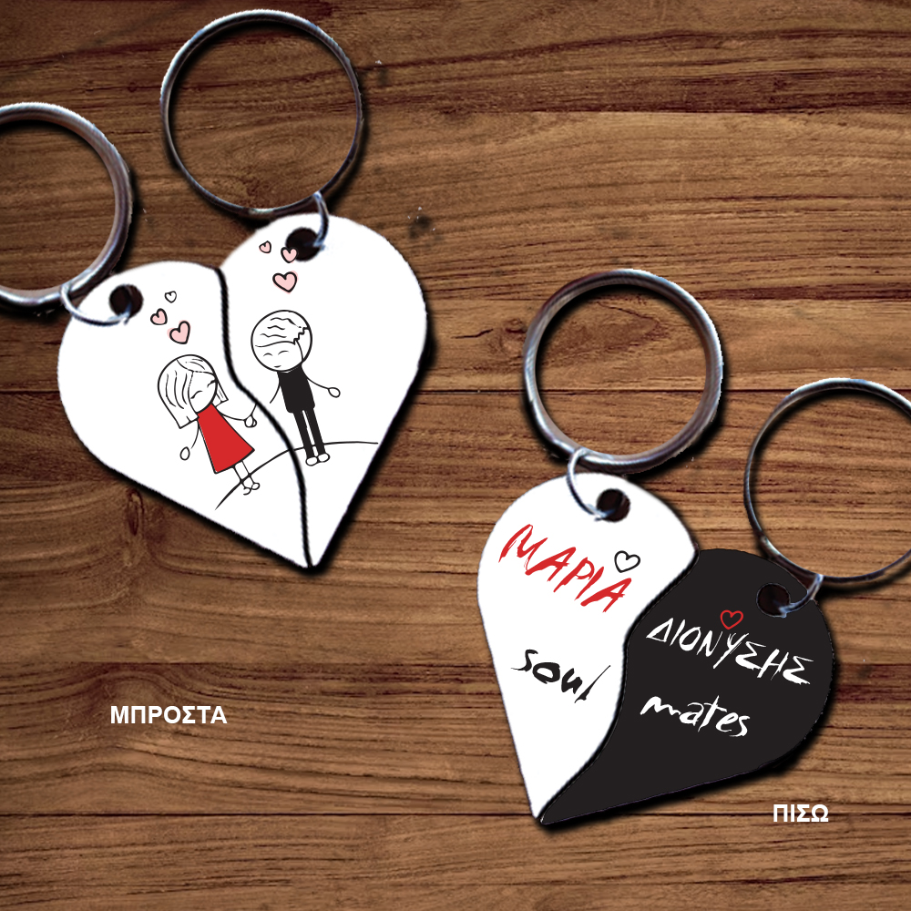 2 Μπρελόκ σχήμα καρδιάς, για ζευγάρι με Ονόματα