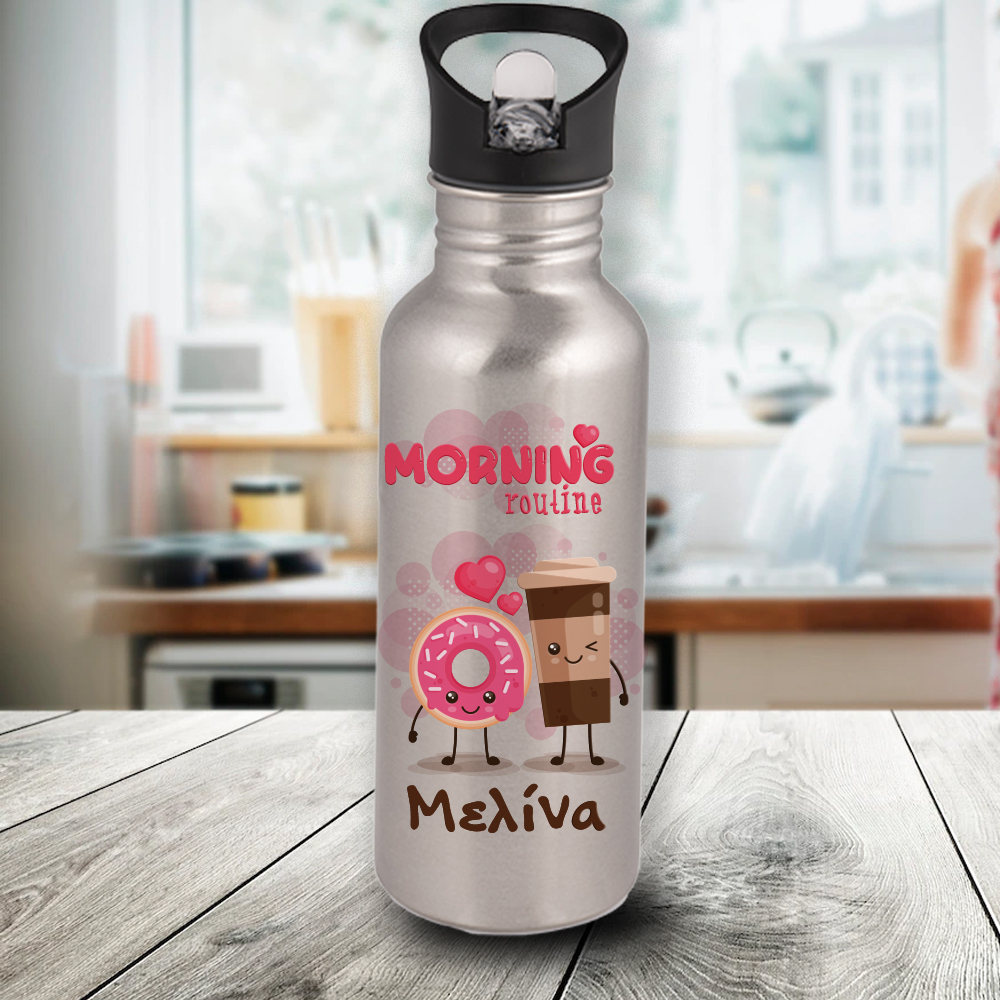 Παγούρι Ανοξείδωτο για Νερό με καλαμάκι, Όνομα για σχολείο