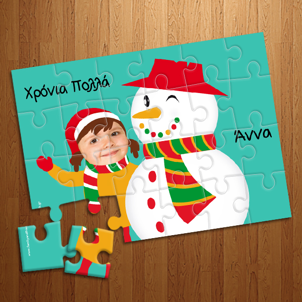 Χριστουγεννιάτικο Παζλ με Φωτογραφία για δώρο στην κόρη και στο γιο σας τα Χριστούγεννα ή την Πρωτοχρονιά. Ένα ξεχωριστό δώρο για όλα τα παιδιά από τη νονά και το νονό σε πολύ φτηνές τιμές. Το ξεχωριστό δώρο που θα κάνει η νονά στο βαφτιστήρι της αυτά τα χριστούγεννα. Δώρο για Χριστούγεννα Χιονάνθρωπος Παζλ Χριστουγεννιάτικο Δώρο με Όνομα, Έτος Δώρο Χριστουγέννων για παιδιά από 1 έτους, 2 ετων, 3 ετων, 4 ετων, 5 ετων, 6 ετων, 7 ετων, 8 ετων, 9 ετων, 10 ετων, 11 ετων, έως 12 ετών, στο δημοτικό ή το γυμνάσιο και για όλους τους μεγάλους που νοιώθουν παιδιά εστω και για λίγο στις Γιορτές! Συνδιάστε την με μια Χριστουγεννιάτικο Φούτερ Παζλ 24-36 Κομμάτια Διάσταση 21cm Χ 29cm, Χαρτόνι 2mm. Το Προσωποποιημένο puzzle, Παζλ με Φωτογραφία, Όνομα μήνυμα Δώρο για Αγόρια & κορίτσια 5 Ετών, 6 Ετών, 7 Ετών, 8 Ετών με όνομα είναι ένα έξυπνο, διαφορετικό και οικονομικό δωράκι που μπορείτε να αγοράσετε για το παιδί σας ή για το αγοράκι ή κοριτσάκι της φίλης σας ηλικίας 5 ετών. Το Προσωποποιημένο Παζλ με δική σου Φωτογραφία Δώρο για Αγόρι & κορίτσι στον παιδικό σταθμό, στο νηπιαγωγείο, της Α’ Δημοτικού, Β’ Δημοτικού, Γ’ Δημοτικού με όνομα, 120, 35, 300 κομματια, είναι το διαφορετικό, πρωτότυπο δώρο που μπορεί να κάνει ο νονός και η νονά στο βαφτιστήρι τους, ο θείος και η θεία στο ανιψάκι, η γιαγιά και ο παππους στο εγγονάκι. Προσωποποιημένο puzzle Παζλ με Φωτογραφίες Δώρο για Αγόρια 5 Ετών μπορεί να είναι το παιδικό δώρο γενεθλίων ( ή δώρο για το παιδικό πάρτι, το δώρο έκπληξη για τις διακοπές) που θα εντυπωσιάσει το αγοράκι ή το κοριτσάκι μόλις το ξετυλίξει και ξεχωρίσει από όλα τα υπόλοιπα δώρα που θα πάρει το παιδί στα γενέθλιά του, στο παιδικό πάρτι. Προσωποποιημένο puzzle, Παζλ με δική σας Φωτογραφία & Βούλες Δώρο για Αγόρια στο δημοτικό ή στο νήπιο με την φωτογραφία και το όνομα του παιδιού Φτιαξε το δικο σου παζλ 120, 35, 300 κομματια, Παζλ κατα παραγγελια, Παζλ με δικη σου φωτογραφια, παζλ για ενηλικες, Προσωποποιημενα παζλ, Παζλ με φωτογραφια, Καδρο με φωτο, ΠΕΡΙΓΡΑΦΗ Πάζλ από Χαρτόνι με γυαλιστερή επιφάνεια, Επιλογές: Α. Διάσταση περίπου 19Χ28, κομμάτια 35, Β. Διάσταση περίπου 20Χ29, κομμάτια 120, Γ. Διάσταση περίπου 29Χ40 κομμάτια 300 4 χρωμη, Προσωποποιημένη Εκτύπωση, περιλαμβάνεται κουτί που μπαίνει το παζλ, Το χρώμα της συσκευασίας δώρου εξαρτάται από την διαθεσιμότητα