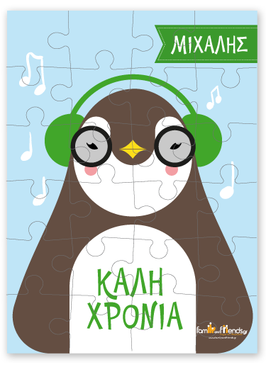Χριστουγεννιάτικο Παζλ με Πιγκουίνο για ένα μοναδικό δώρο στο αγόρι μου στις γιορτές. Φέτος ο Άγιος Βασίλης θα φέρει το καλύτερο δώρο τα Χριστούγεννα, ένα μοναδικό παζλ με πιγκουίνο για όλα τα παιδάκια!. Το Προσωποποιημένο puzzle, Παζλ με Φωτογραφία, Όνομα μήνυμα Δώρο για Αγόρια & κορίτσια 5 Ετών, 6 Ετών, 7 Ετών, 8 Ετών με όνομα είναι ένα έξυπνο, διαφορετικό και οικονομικό δωράκι που μπορείτε να αγοράσετε για το παιδί σας ή για το αγοράκι ή κοριτσάκι της φίλης σας ηλικίας 5 ετών. Το Προσωποποιημένο Παζλ με δική σου Φωτογραφία Δώρο για Αγόρι & κορίτσι στον παιδικό σταθμό, στο νηπιαγωγείο, της Α’ Δημοτικού, Β’ Δημοτικού, Γ’ Δημοτικού με όνομα, 120, 35, 300 κομματια, είναι το διαφορετικό, πρωτότυπο δώρο που μπορεί να κάνει ο νονός και η νονά στο βαφτιστήρι τους, ο θείος και η θεία στο ανιψάκι, η γιαγιά και ο παππους στο εγγονάκι. Προσωποποιημένο puzzle Παζλ με Φωτογραφίες Δώρο για Αγόρια 5 Ετών μπορεί να είναι το παιδικό δώρο γενεθλίων ( ή δώρο για το παιδικό πάρτι, το δώρο έκπληξη για τις διακοπές) που θα εντυπωσιάσει το αγοράκι ή το κοριτσάκι μόλις το ξετυλίξει και ξεχωρίσει από όλα τα υπόλοιπα δώρα που θα πάρει το παιδί στα γενέθλιά του, στο παιδικό πάρτι. Προσωποποιημένο puzzle, Παζλ με δική σας Φωτογραφία & Βούλες Δώρο για Αγόρια στο δημοτικό ή στο νήπιο με την φωτογραφία και το όνομα του παιδιού Φτιαξε το δικο σου παζλ 120, 35, 300 κομματια, Παζλ κατα παραγγελια, Παζλ με δικη σου φωτογραφια, παζλ για ενηλικες, Προσωποποιημενα παζλ, Παζλ με φωτογραφια, Καδρο με φωτο, ΠΕΡΙΓΡΑΦΗ Πάζλ από Χαρτόνι με γυαλιστερή επιφάνεια, Επιλογές: Α. Διάσταση περίπου 19Χ28, κομμάτια 35, Β. Διάσταση περίπου 20Χ29, κομμάτια 120, Γ. Διάσταση περίπου 29Χ40 κομμάτια 300 4 χρωμη, Προσωποποιημένη Εκτύπωση, περιλαμβάνεται κουτί που μπαίνει το παζλ, Το χρώμα της συσκευασίας δώρου εξαρτάται από την διαθεσιμότητα