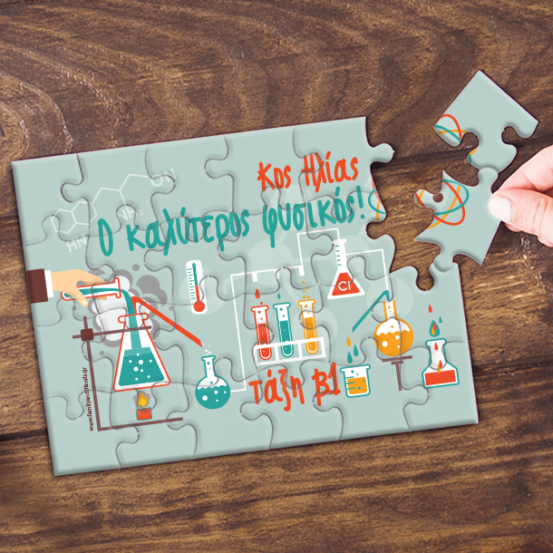 Δώρο Προσωποποιημένο Με σχέδια Φυσικοχημείας Παζλ με Ονόματα, Μήνυμα, με αφορμή το τέλος της σχολικής χρονιάς.