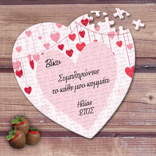 Προσωποποιημένο παζλ με φωτογραφία σε σχήμα καρδιάς, ονόματα, ημερομηνία, για να ευχηθείται χρόνια πολλά στον φίλο ή τον φίλο σας με αφορμή τα γενέθλια την γιορτή ή όποια επέτειο γιορτάζετε.