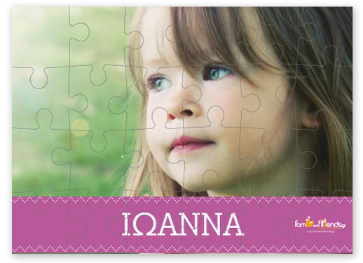 Παζλ με Mωβ Σχέδιο για δώρο σε κοριτσάκια με την φωτογραφία και το όνομά τους. Ένα μοναδικό και πρωτότυπο δωράκι για παιδιά στο δημοτικό..