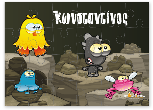 Παζλ με Τερατάκια για Αγοράκια για να μοιράσετε πρωτότυπα αναμνηστικά δωράκια στους φίλους των παιδιών σας στο παιδικό πάρτι.. Το Προσωποποιημένο puzzle, Παζλ με Φωτογραφία, Όνομα μήνυμα Δώρο για Αγόρια & κορίτσια 5 Ετών, 6 Ετών, 7 Ετών, 8 Ετών με όνομα είναι ένα έξυπνο, διαφορετικό και οικονομικό δωράκι που μπορείτε να αγοράσετε για το παιδί σας ή για το αγοράκι ή κοριτσάκι της φίλης σας ηλικίας 5 ετών. Το Προσωποποιημένο Παζλ με δική σου Φωτογραφία Δώρο για Αγόρι & κορίτσι στον παιδικό σταθμό, στο νηπιαγωγείο, της Α’ Δημοτικού, Β’ Δημοτικού, Γ’ Δημοτικού με όνομα, 120, 35, 300 κομματια, είναι το διαφορετικό, πρωτότυπο δώρο που μπορεί να κάνει ο νονός και η νονά στο βαφτιστήρι τους, ο θείος και η θεία στο ανιψάκι, η γιαγιά και ο παππους στο εγγονάκι. Προσωποποιημένο puzzle Παζλ με Φωτογραφίες Δώρο για Αγόρια 5 Ετών μπορεί να είναι το παιδικό δώρο γενεθλίων ( ή δώρο για το παιδικό πάρτι, το δώρο έκπληξη για τις διακοπές) που θα εντυπωσιάσει το αγοράκι ή το κοριτσάκι μόλις το ξετυλίξει και ξεχωρίσει από όλα τα υπόλοιπα δώρα που θα πάρει το παιδί στα γενέθλιά του, στο παιδικό πάρτι. Προσωποποιημένο puzzle, Παζλ με δική σας Φωτογραφία & Βούλες Δώρο για Αγόρια στο δημοτικό ή στο νήπιο με την φωτογραφία και το όνομα του παιδιού Φτιαξε το δικο σου παζλ 120, 35, 300 κομματια, Παζλ κατα παραγγελια, Παζλ με δικη σου φωτογραφια, παζλ για ενηλικες, Προσωποποιημενα παζλ, Παζλ με φωτογραφια, Καδρο με φωτο, ΠΕΡΙΓΡΑΦΗ Πάζλ από Χαρτόνι με γυαλιστερή επιφάνεια, Επιλογές: Α. Διάσταση περίπου 19Χ28, κομμάτια 35, Β. Διάσταση περίπου 20Χ29, κομμάτια 120, Γ. Διάσταση περίπου 29Χ40 κομμάτια 300 4 χρωμη, Προσωποποιημένη Εκτύπωση, περιλαμβάνεται κουτί που μπαίνει το παζλ, Το χρώμα της συσκευασίας δώρου εξαρτάται από την διαθεσιμότητα