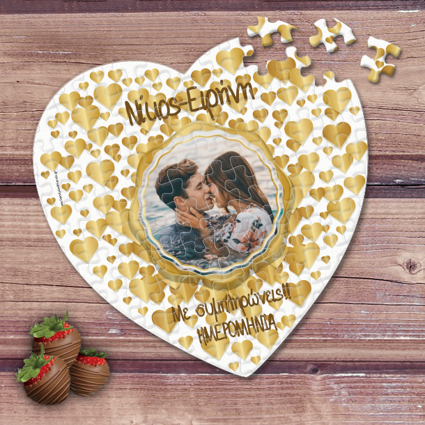Πρωτότυπο Πάζλ σε σχήμα καρδιάς με ονόματα, φωτογραφία, αφιέρωση και ημερομηνία, ένα Μοναδικό Προσωποποιημένο Δώρο για Ερωτευμένους, για να πείτε χρόνια πολλά στον αγαπημένο σας ή την αγαπημένη σας με αφορμή του αγίου Βλαντίνου την Γιορτή των Ερωτευμένων, με την αγαπημένη σας φωτογραφία.