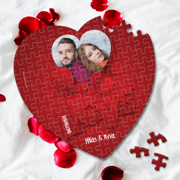 Παζλ κόκκινο σε σχήμα καρδιάς με Φωτογραφία, Ονόματα