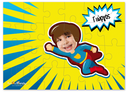 Παζλ Σούπερμαν με Φωτογραφία για ένα μοναδικό και προσωποποιημένο δωράκι για παιδιά στο νήπιο και στο δημοτικό.