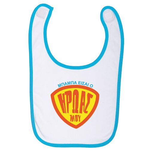 Η Προσωποποιημένη Σαλιάρα με στάμπα, Μπαμπά είσαι ο Ηρωάς μου, θα είναι έκπληξη για τον Μπαμπά και θα μείνει για πάντα στη ντουλάπα του παιδιου, δημιουργώντας μοναδικές αναμνήσεις σε όλη την οικογένεια.