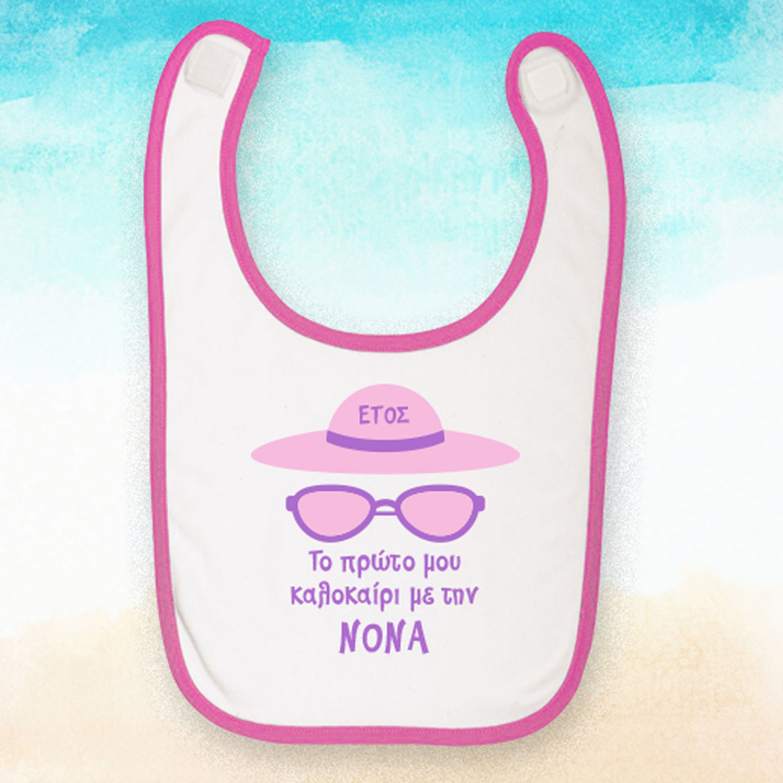Η Ροζ Προσωποποιημένη Σαλιάρα, Το πρώτο μου καλοκαίρι με τη Νονά, είναι το πιο πρωτότυπο δώρο για κοριτσάκια 3 μηνών, 6 μηνών, 9 μηνών και 12 μηνών . Η Ροζ Σαλιάρα, Το πρώτο μου καλοκαίρι με την Νονά, είναι ένα δώρο που θα μείνει για πάντα στη ντουλάπα του παιδιού και θα δημιουργεί μοναδικές αναμνήσεις για μια ζωή σε όλη την οικογένεια Ενα καλοκαιρινό , οικονομικό και πρωτότυπο δώρο που μπορεί να κάνεις ο νονός και η νονά στο βαφτιστήρι τους και η θεία ή ο θείος στο ανιψάκι τους!