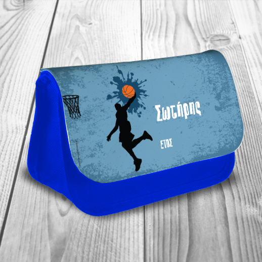 Μπλε Υφασμάτινη Σχολική Κασετίνα με Μπάσκετ για Αγόρι