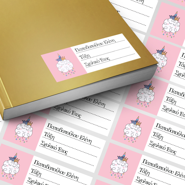 Σχολικές Ετικέτες Αυτοκόλλητες με Μονόκερο για Βιβλία, Τετράδια, Όνομα, Τάξη Προσωποποιημένες δοθεί σαν δώρο με αφορμή τα γενέθλια ή την γιορτή κάθε παιδιού του δημοτικού σχολείου και να ξεχωρίσει από όλα τα άλλα δώρα αμέσως, γιατί είναι προσωπικό και ξεχωριστό.