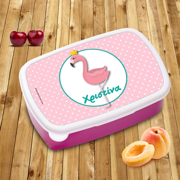 Το Προσωποποιημένο Φαγητοδοχείο με Φλαμίνγκο για Κορίτσια Νηπιαγωγείου, Παιδικού Σταθμού, Σχολείου, είναι ένα πρωτότυπο και ξεχωριστό δώρο που μπορεί να κάνει ο Παππούς και η γιαγιά στο εγγονάκι τους που ξεκινάει το σχολείο και θέλει να έχει το δικό του υγιεινό φαγητό που του έφτιαξε η μαμά.