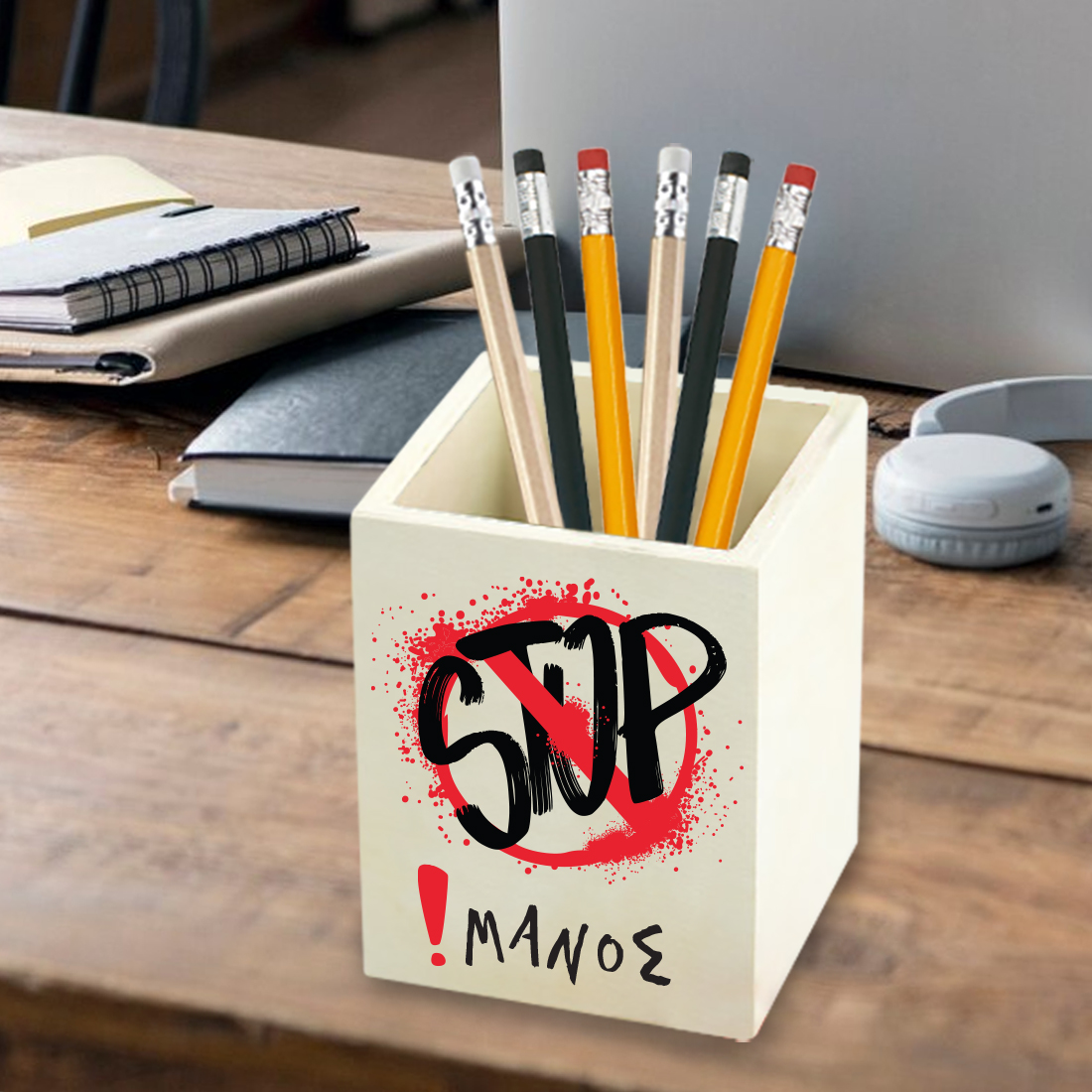 Μολυβοθήκη για το γραφείο Ξύλινη με Όνομα για Αγόρια, Δώρο για τη νεα σχολική χρονιά που αρχιζει, για να βάζει τα στυλό τα μολύβια και τους μαρακδόρους της και θα μείνει αναμνηστικό για πάντα.