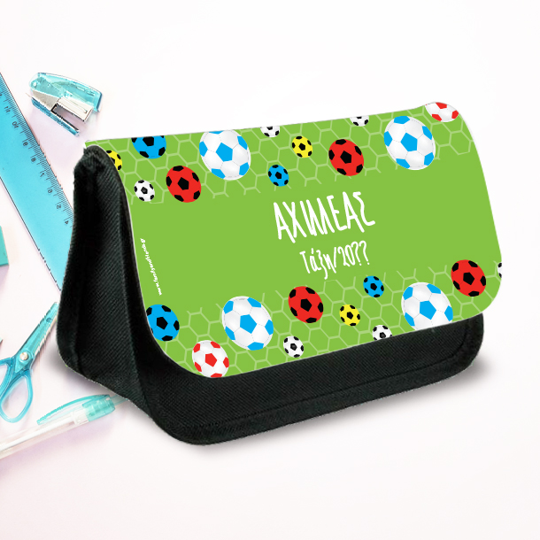Η Προσωποποιημένη Σχολική Υφασμάτινη Κασετίνα με μπάλες ποδοσφαίρου με Όνομα, Τάξη, Έτος που θα ξεχωρίσει τη νέα σχολική χρονιά στην τσάντα κάθε μαθητή!