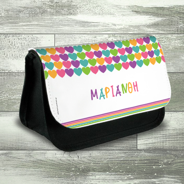 Η Προσωποποιημένη Κασετίνα με Πολύχρωμες Καρδιές Υφασμάτινη με Όνομα για κορίτσια για όλες τις τάξεις στο Δημοτικό για αγορια του δημοτικου σχολειου είναι το διαφορετικό δώρο για το ξεκίνημα της σχολικής χρονιάς που θα ξεχωρίζει στην σχολική τσάντα κάθε μαθητή ή μαθητριας.