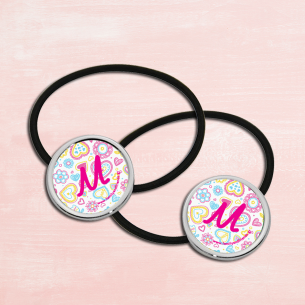 33477|Λαστιχάκια Μαλλιών με Καρδιές και Αρχικό Ονόματος