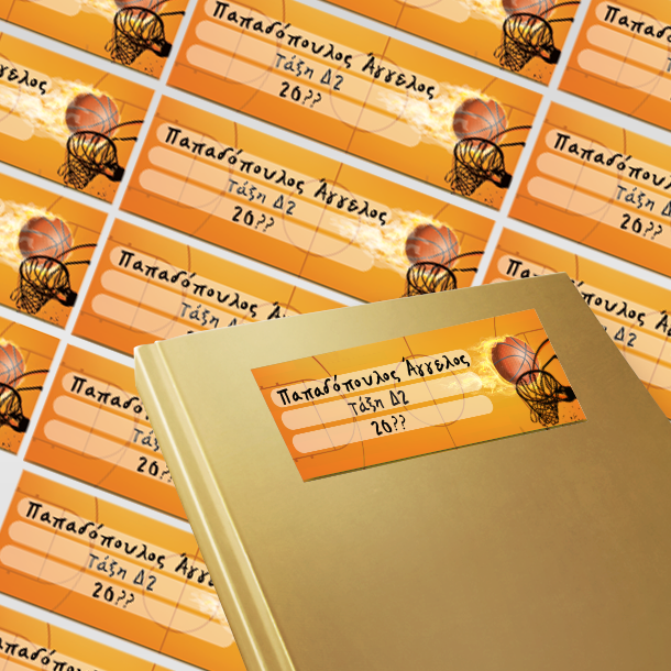 Με Μπασκέτα Σχολικές Αυτοκόλλητες Ετικέτες για Βιβλία, Τετράδια με Όνομα και Τάξη Προσωποποιημένες δώρο με αφορμή τα γενέθλια ή την γιορτή κάθε παιδιού του δημοτικού σχολείου και να ξεχωρίσει από όλα τα άλλα δώρα αμέσως, γιατί είναι προσωπικό και ξεχωριστό.
