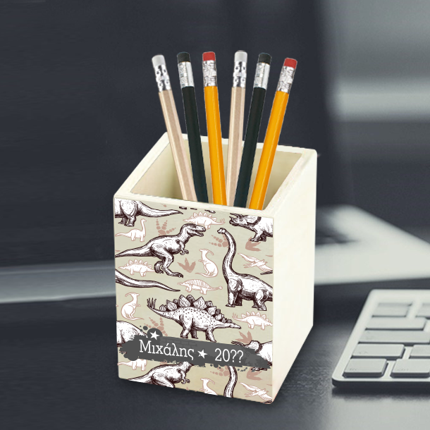 Με Δεινόσαυρο, Όνομα, Μολυβοθήκη Γραφείου Ξύλινη, ένα Πρωτότυπο και διαφορετικό δώρο γενεθλίων ή ονομαστικής Γιορτής για αγόρια, κοριτσια.