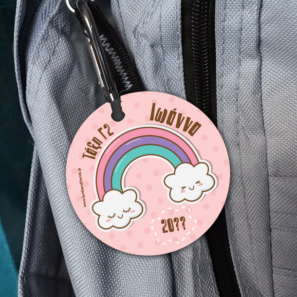 Με Ουράνιο Τόξο Ταμπελάκι Τσάντας με Όνομα με μεταλλικό κρίκο και Όνομα είναι επίσης ένα πρωτότυπο αναμνηστικό δωράκι για τους καλεσμένους στο παιδικό πάρτι που θα κάνετε κατά την διάρκεια της νέας σχολικής χρονιάς.