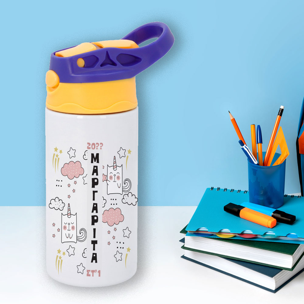 Μεταλλικό Παγούρι Νερού με καλαμάκι & Όνομα, ένα μοναδικό δώρο για τη νέα σχολική χρονιά σε κάθε κορίτσι ή αγορι, που ξεκινάει το δημοτικό, τον παιδικό σταθμό ή το νηπιαγωγείο.