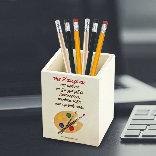 Μολυβοθήκη Γραφείου Ξύλινη με Όνομα και Κείμενο