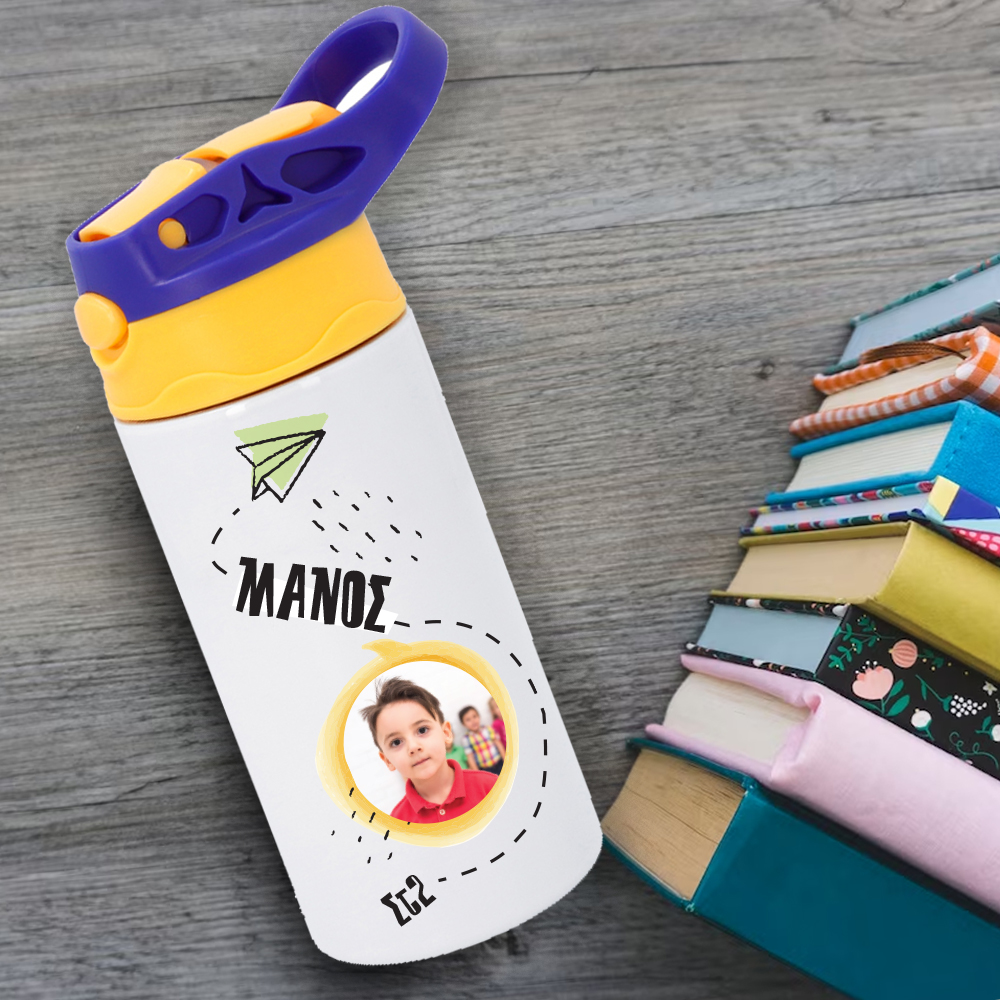 Ένα μοναδικό δώρο για τη νέα σχολική χρονιά σε κάθε κορίτσι ή αγορι, που ξεκινάει το δημοτικό, τον παιδικό σταθμό ή το νηπιαγωγείο, Με ενσωματωμένο καλαμάκι Παγούρι Νερού με Όνομα.