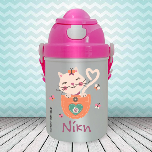 Παγουρίνι Νηπιαγωγείου με Γατούλα Προσωποποιημένο με Όνομα για Κορίτσια