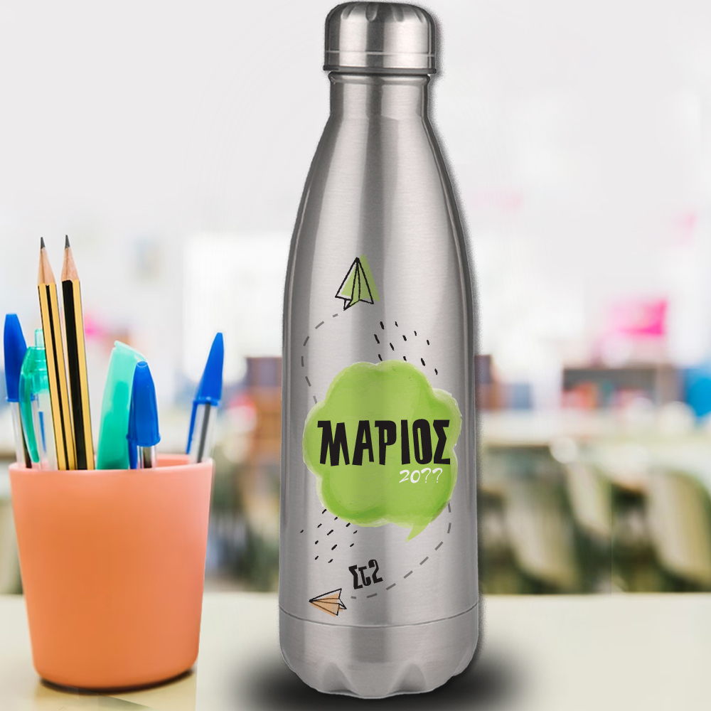 Ανοξείδωτο Παγούρι Νερού Θερμός με Όνομα 750 ml, stainless steel, Πρωτότυπο δώρο για τη νέα σχολική χρονιά σε κάθε κορίτσι ή αγορι, που ξεκινάει το δημοτικό, το γυμνάσιο, τον παιδικό σταθμό ή το νηπιαγωγείο.