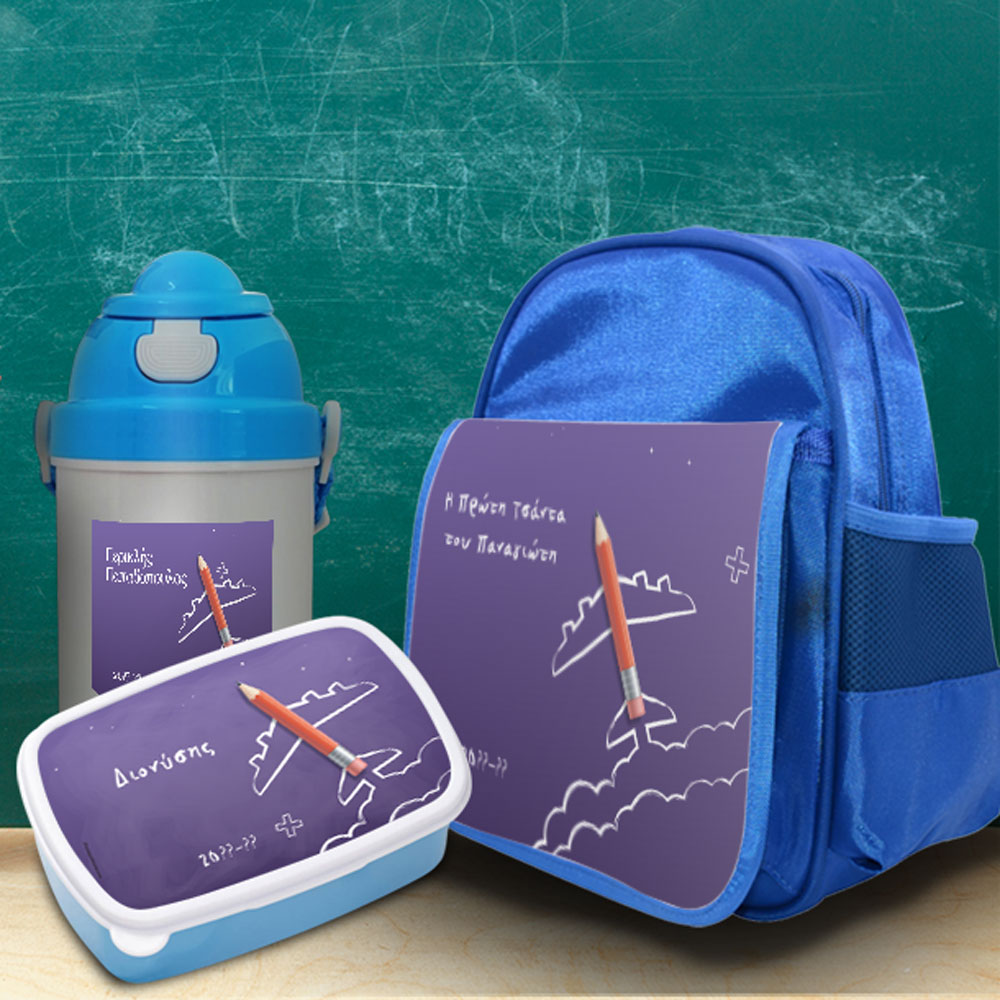Στο familyandfriends.gr θα βρείτε μοναδικά προσωποποιημένα σχολικά είδη με όνομα ή φωτογραφία, για την νέα σχολική χρονιά για αγόρια και κορίτσια του γυμνασιου. Φτιάξτε σετ σχολικη Τσάντα με Παγουρίνο με όποιο σχέδιο θέλετε για Αγόρια και κορίτσια Προσωποποιημένο με όνομα και έτος, δώρο που θα κάνει ο νονός στο βαπτιστήρι του, η θεία στο ανηψάκι της, ή η γιαγιά στο αγαπημένο της εγγονάκι για να έχει καλό ξεκίνημα στο νηπιαγωγείο και καλή πρόοδο στο σχολείο την νεα χρονιά του δημοτικού!