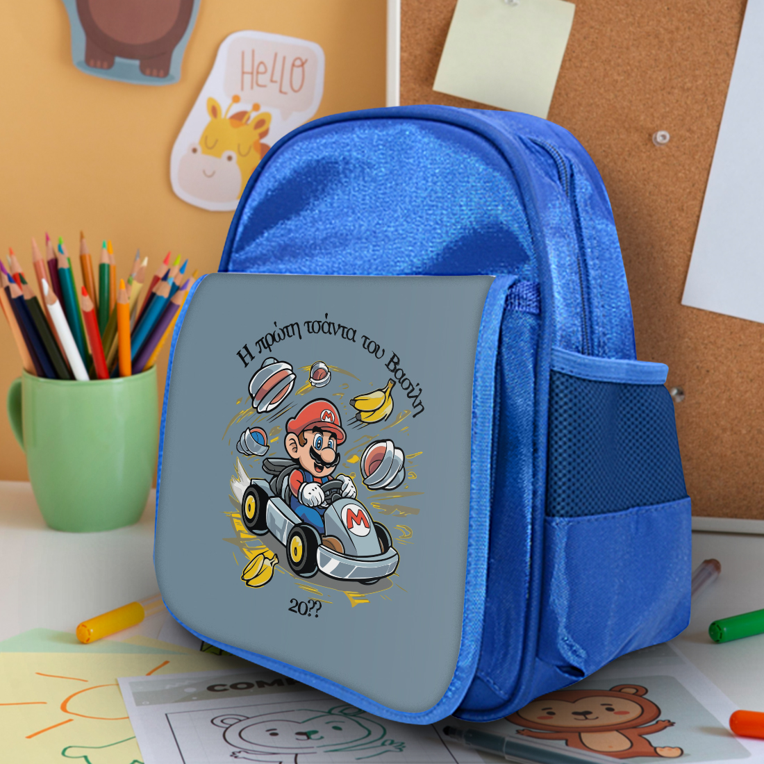 Οι Προσωποποιημένες Σχολικες τσάντες νηπιαγωγείου με Όνομα για Αγόρια, κορίτσια, ένα πρωτότυπο δώρο που θα κάνει η νονά στο βαπτιστήρι της. Η Τσάντα Νηπιαγωγείου, Super Mario με Όνομα, για αγόρι είναι το διαφορετικό δώρο για το ξεκίνημα της σχολικής χρονιάς που θα ξεχωρίζει. Προσχολική προσωποποιημένη Τσάντα με Όνομα, Έτος, για αγόρια, μπορεί να δοθεί δώρο με αφορμή τα γενέθλια ή την ονομαστική γιορτή κάθε παιδιού του νηπιαγωγείου ή του παιδικού σταθμού και θα ξεχωρίσει από όλα τα άλλα δώρα αμέσως.