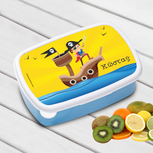 Προσωποποιημένο Τάπερ Φαγητού για το Σχολείο με Πειρατή και Όνομα, Ένα πρωτότυπο και ξεχωριστό δώρο που μπορεί να κάνει ο Παππούς και η γιαγιά στο εγγονάκι τους που ξεκινάει το σχολείο και θέλει να έχει το δικό του υγεινό φαγητό που του εφτιαξε η μαμα για το κολατσιό στο σχολείο.