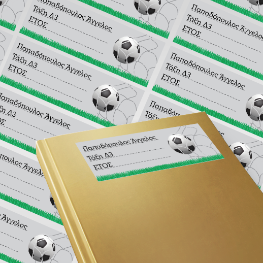 Σχολικές Ετικέτες για Βιβλία, Τετράδια με Μπάλα Ποδοσφαίρου με Όνομα και Τάξη Προσωποποιημένες δοθεί σαν δώρο με αφορμή τα γενέθλια ή την γιορτή κάθε παιδιού του δημοτικού σχολείου και να ξεχωρίσει από όλα τα άλλα δώρα αμέσως, γιατί είναι προσωπικό και ξεχωριστό.
