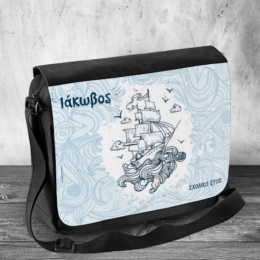Σχολική Τσάντα Ώμου με Όνομα Προσωποποιημένη και σκίτσο Καράβι