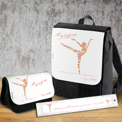 Σετ Τσάντα Πλάτης με Κασετίνα, Χάρακα με Μπαλαρίνα, Όνομα