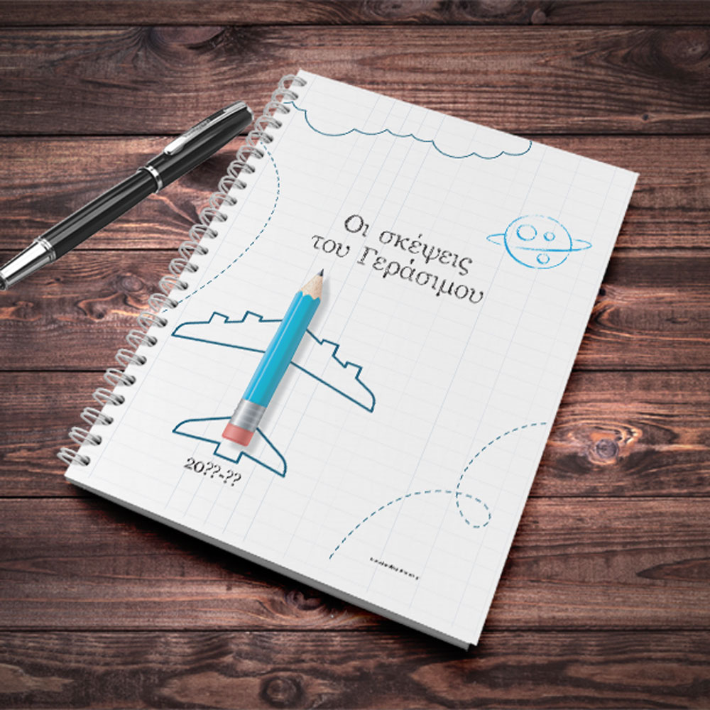 Οι σκέψεις του ..., Τετράδιο Σπιράλ Α4 με Όνομα, Έτος, διαφορετικό δώρο για την νέα σχολική χρονιά σε κάθε μαθητή, μαθήτρια, αγόρι και κορίτσι Προσωποποιημένο.