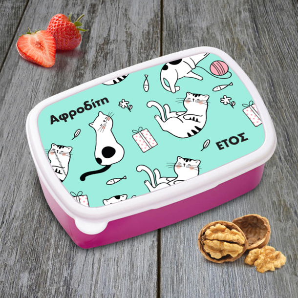 Τάπερ φαγητού με γατάκια για το σχολείο Προσωποποιημένο με όνομα, για αγορια, μπορεί να είναι το δώρο με αφορμή τα γενέθλια ή την γιορτή κάθε κοριτσιού ηλικίας 5 ετών, 6 ετών, 9 ετών, 10 ετών, 11 ετών και να ξεχωρίσει από όλα τα άλλα δώρα αμέσως, γιατί είναι προσωπικό και ξεχωριστό.