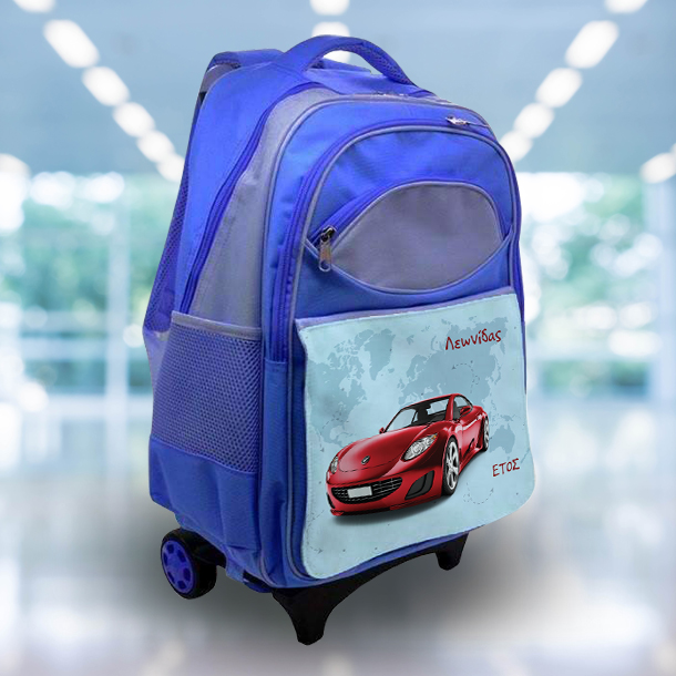 Ένα μοναδικό δώρο της νονάς για την νέα σχολική χρονιά για κάθε αγορι ή κορίτσι Τσάντα με Ροδάκια με Αυτοκίνητο Όνομα, Έτος για Αγόρι, για Αγορια ή κορίτσια μαθητές του δημοτικού σχολείου ή του γυμνασίου.