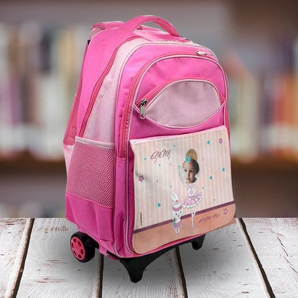 Η Σχολική Τσάντα με ροδάκια & Πλάτης, με Φωτογραφία, Όνομα και έτος για Κορίτσια, μπορεί να είναι το δώρο που θα κάνει ο νονός στο βαπτιστήρι του, η θεία στο ανηψάκι της, ή η γιαγιά στο αγαπημένο της εγγονάκι για να έχει καλό ξεκίνημα και ακλή πρόοδο στο σχολείο την νεα χρονιά!