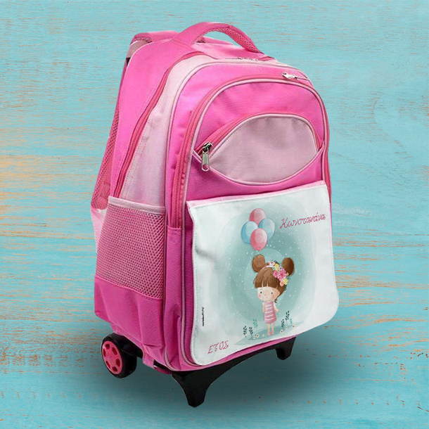 Τσάντα Σχολική Πλάτης με τρόλευ, Όνομα, Έτος για Κορίτσι