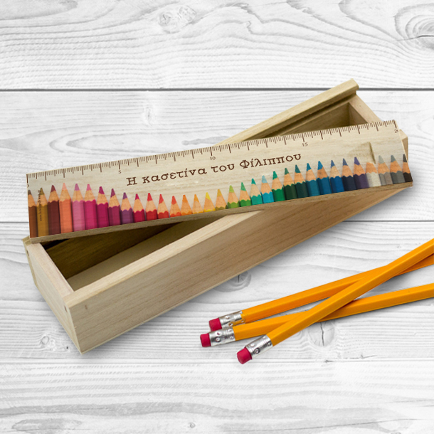 Ξύλινη Κασετίνα με Χρώματα, Προσωποποιημένη με Όνομα